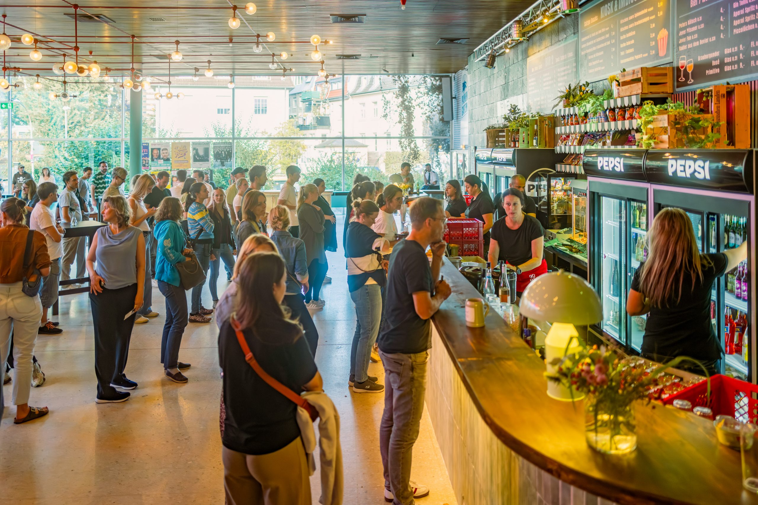 Das Foyer ist von Licht durchflutet und bietet sich perfekt an für kleine Messen, Jobbörsen, Empfänge, Kunstausstellungen oder jegliche andere Ideen. Tagsüber sehr hell und freundlich, sobald es draußen dunkel wird ein stimmungsvoller Raum, mit verschiedensten Möglichkeiten der Lichtwahl und behaglicher Gemütlichkeit.